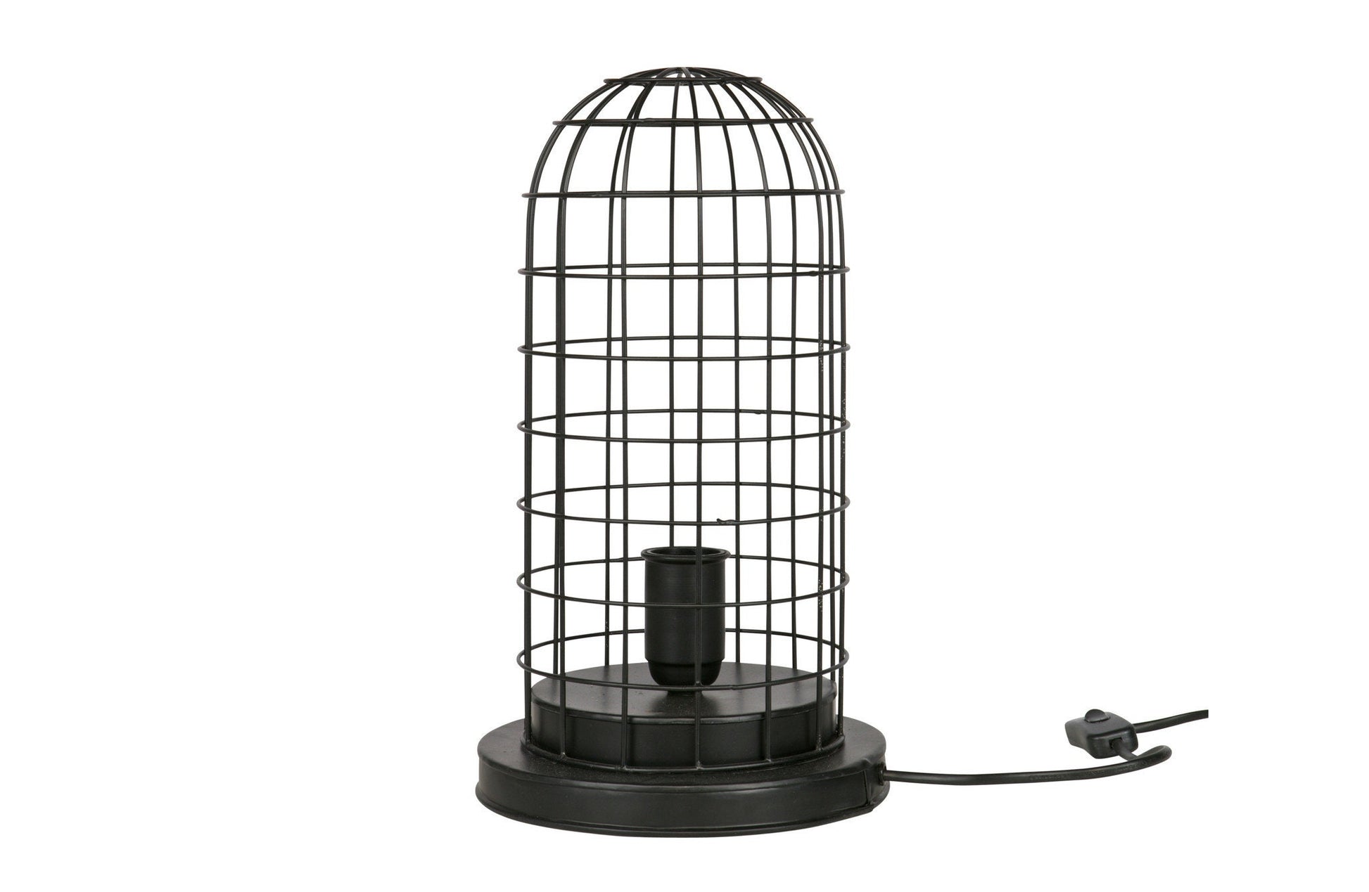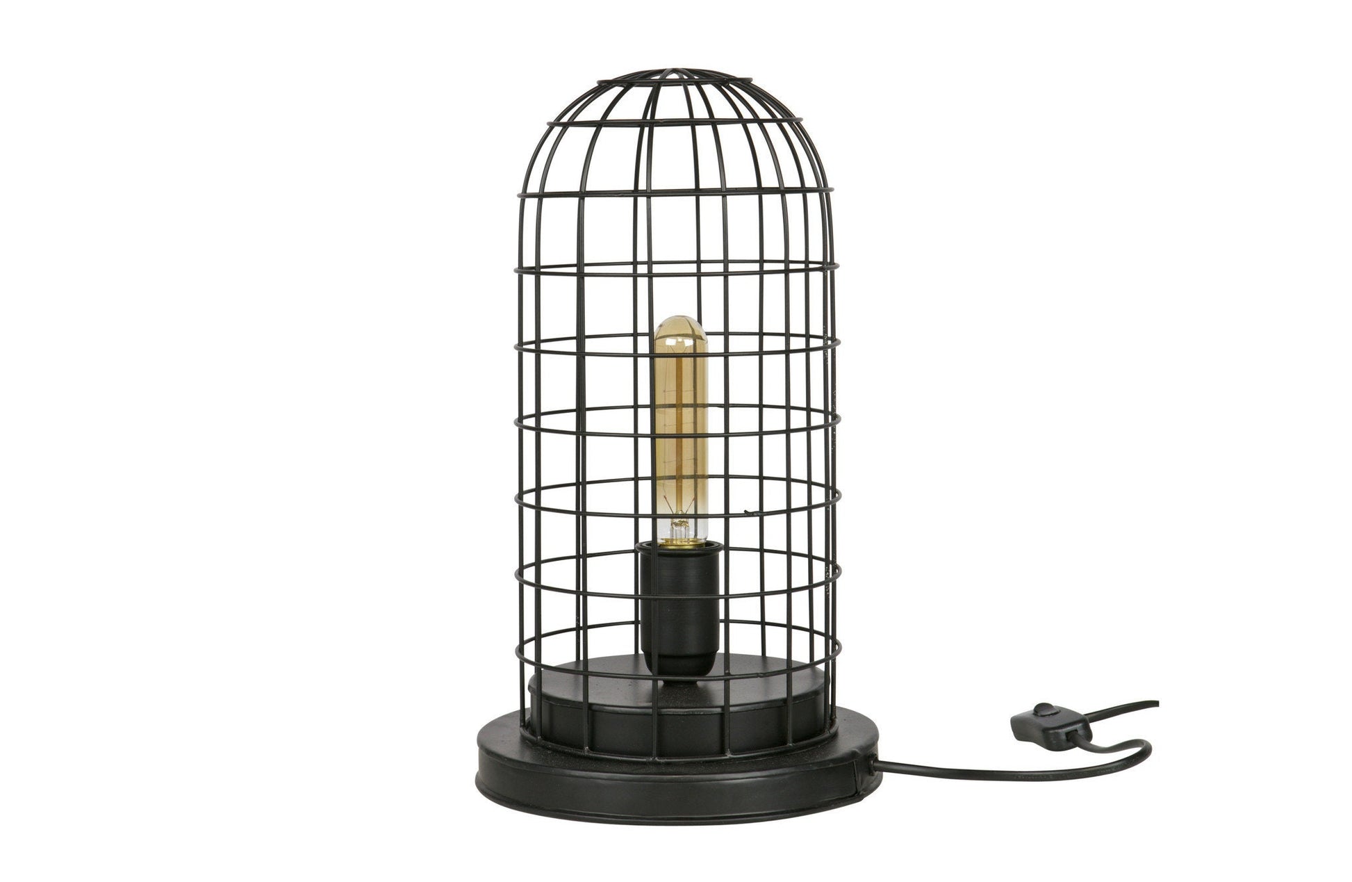 ✔ Candeeiro de mesa em metal resistente com redoma de arame em ferro na cor preta