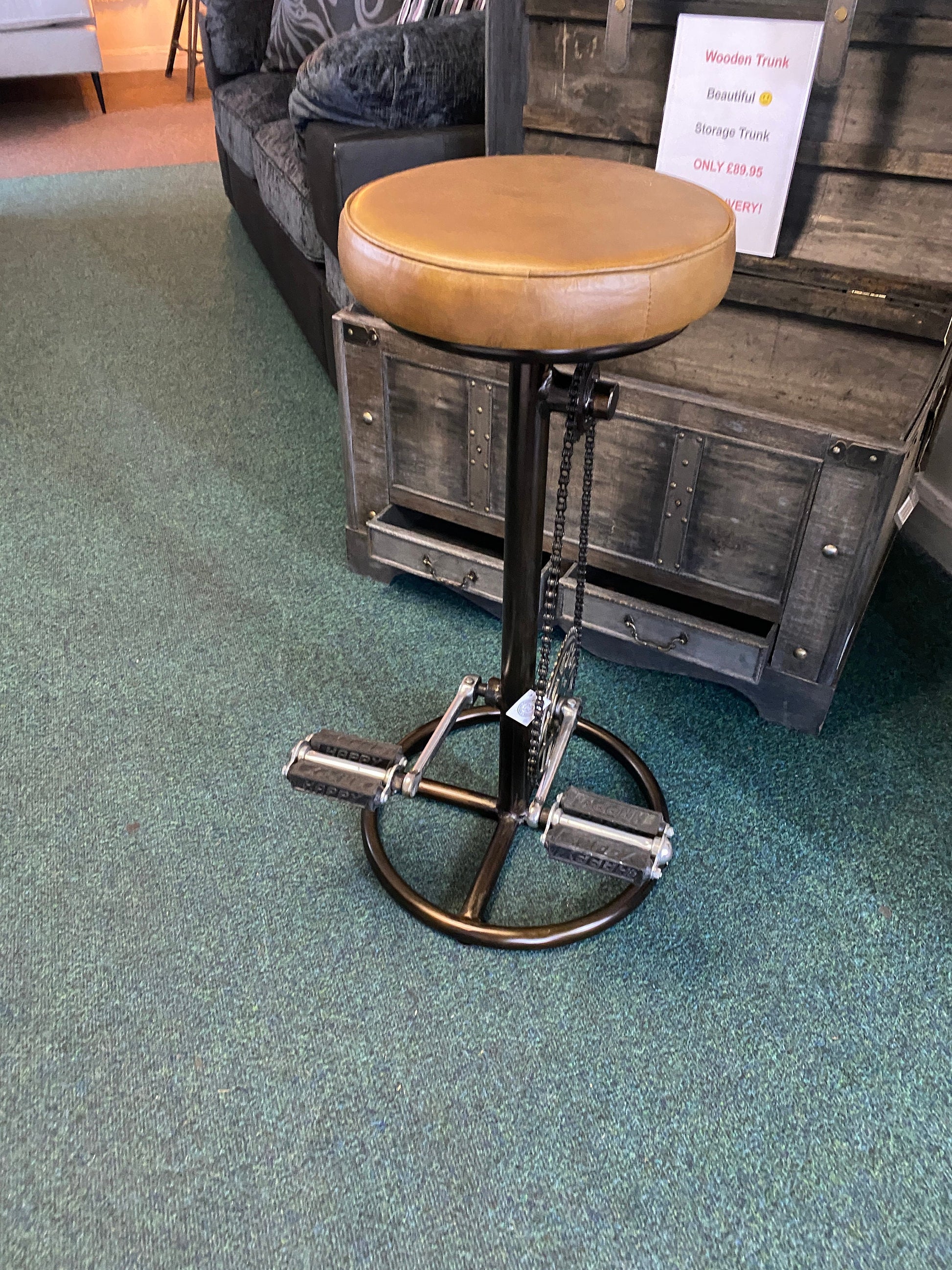 ✔ Assento em couro, estrutura em ferro envelhecido.